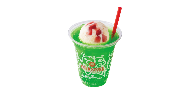 新商品コールドストーンの『メロンクリームソーダ』は、エンターテインメント・アイスクリームショップ「コールド・ストーン・クリーマリー」と初めてコラボレーションしたドリンクで、コールドストーンのオリジナルカップに入ったメロンソーダの上に、人気NO.1フレーバー「ストロベリー ショートケーキ セレナーデ」を浮かべました。