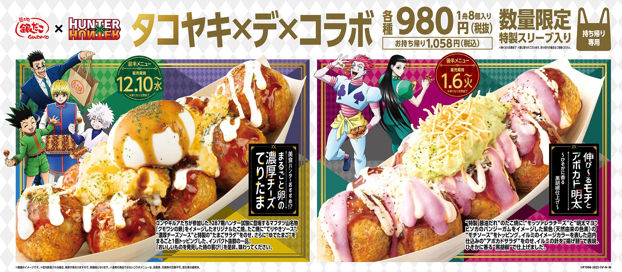 2025年12月10日(水)から2026年2月9日(月)までの期間、全国の築地銀だこ店舗(酒場業態、球場、競馬場、催事店等の一部店舗を除く)にて、日本国内全国規模の飲食チェーンでは “初” となる TVアニメ『HUNTER×HUNTER(ハンター×ハンター)』(以下HUNTER×HUNTER) とのコラボレーションを実施いたします!