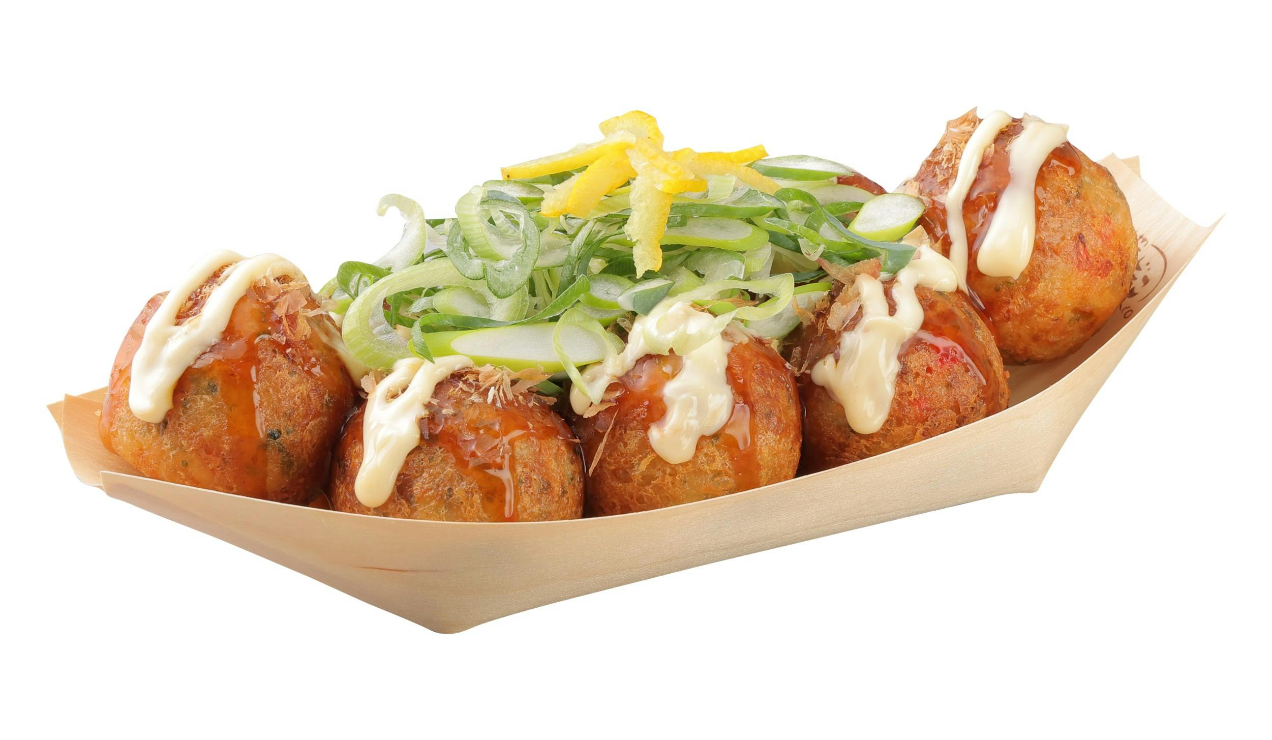 ぽん酢だれとマヨネーズの組み合わせに、爽やかな香りの“ゆずピール”を添えました。さっぱりとお召し上がりいただける当店舗限定商品です。